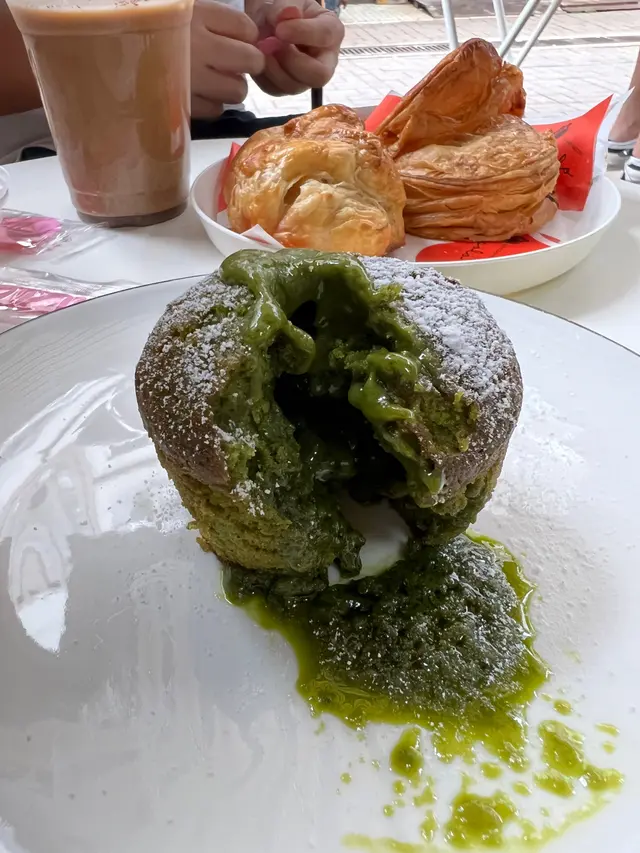 沒有朱古力味,抹茶味香濃,切開真係有少少熔岩嘅效果。唔會太甜,如果有埋紅豆就Perfect。