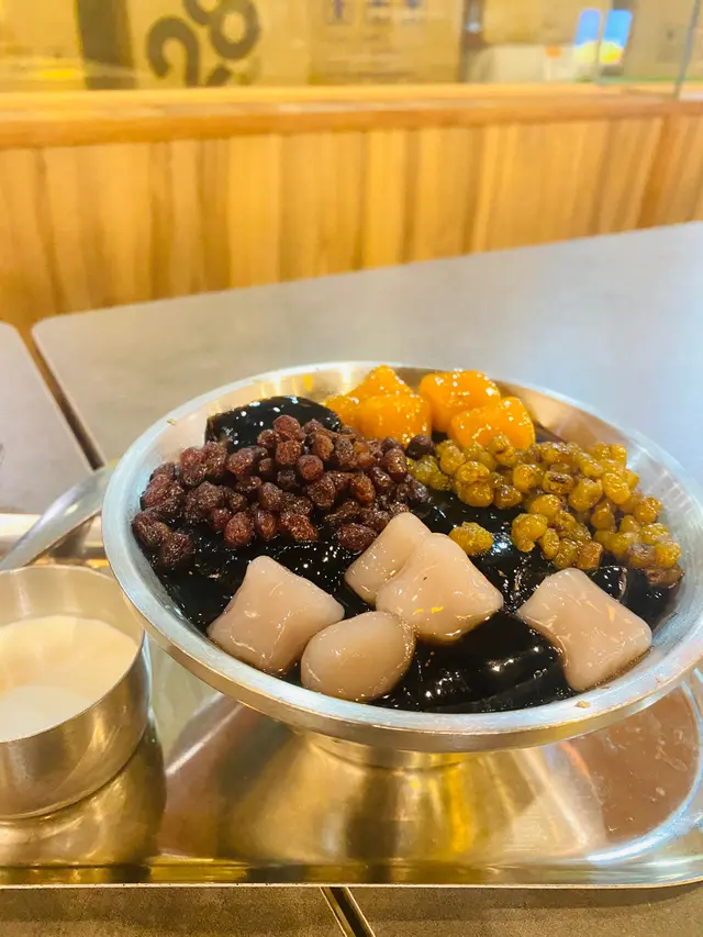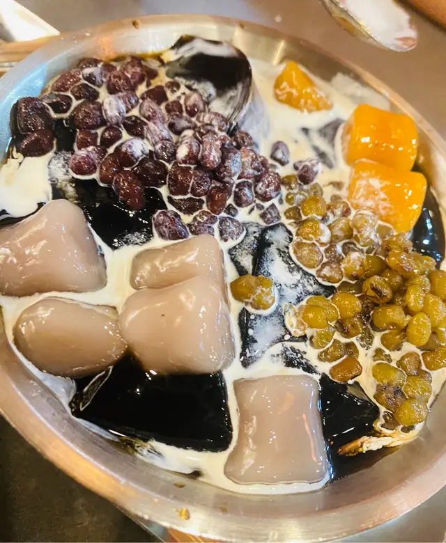 有紅豆🫘綠豆、芋圓、同埋仙草喺入面(跟咗淡奶)