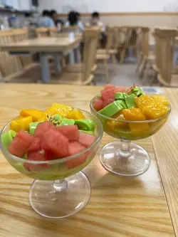 最後嘅甜品都好值得推薦!😍諗到斑斕河粉依樣野都好有創意😆 平時斑斕蛋糕,斑斕糕同珍多冰就食得多,第一次食斑斕河粉甜品,而且唔係出面落好多綠色色素個種,真係食得出有斑斕味,而且配有好多水果,底層仲有梛汁西米😍 完全feel到小店嘅用心!💯