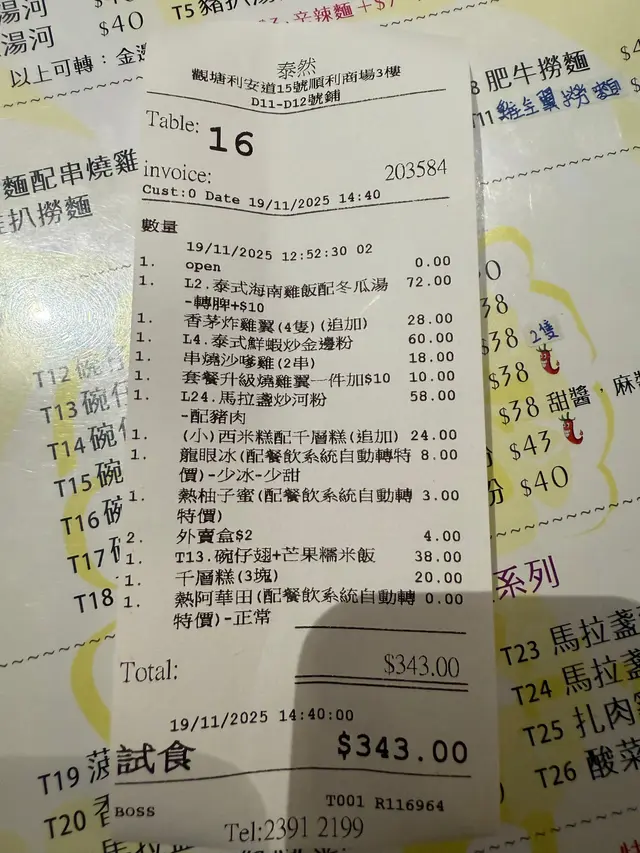 觀塘順利抵食泰菜 Chris Tong等级42025-11-23 關注 經過去咗食觀塘順利邨嘅「泰然✨」,佢哋嘅泰菜款式多,而且價錢親民,絕對係街坊之選👍🏻🍗 泰式海南雞髀飯雞髀肉嫩滑多汁,油飯香口又唔會太膩,配埋酸辣嘅泰式醬汁,真係唔錯 😋🍤 泰式鮮蝦炒金邊粉金邊粉炒得乾身,蝦夠新鮮爽口,酸酸甜甜嘅味道好開胃🔥🍗🌿 香茅炸雞翼外脆內嫩,唔會覺得heavy,鬆脆好味🍺🥩 馬拉盞豬肉炒河粉馬拉盞香味濃郁,炒得鑊氣十足,豬頸肉片夠爽,河粉乾身夠分明,好味🔥🍮 西米糕及千層糕西米糕清甜,千層糕口感層次分明「泰然✨」食物選擇多、價錢親民,係街坊飯堂之選以上食評乃用戶個人意見 , 並不代表OpenRice之觀點。讚好分享觀塘順利抵食泰菜 泰然 (順利商場) https://s.openrice.com/QrLT0Eb1V00檢舉 張貼 評分4味道4環境4服務4衛生5抵食用餐途徑堂食