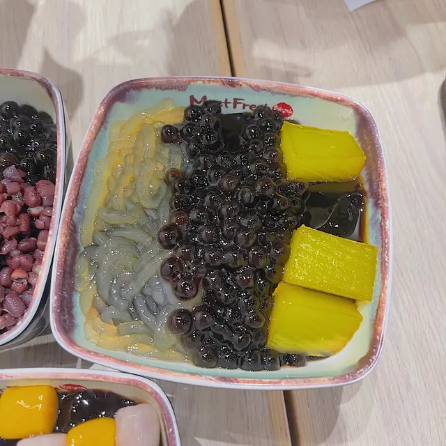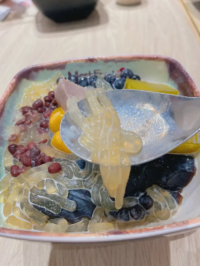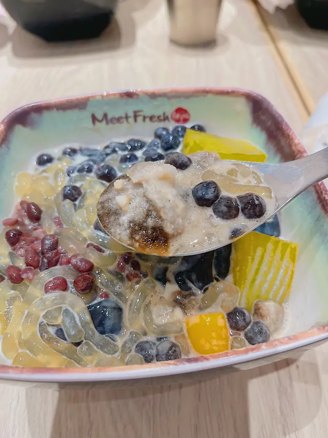份量好多,有粉條,粉粿,珍珠,仙草,仙草冰沙,粉條係一條條好似麵條咁好煙靭,粉粿個外型好似黃金糕一樣都係甜甜地,好煙靭,珍珠細細粒都幾好咬,仙草好嫩滑,有少少藥材嘅味道,感覺好清熱,仙草冰沙係碎冰口感比較粗糙一啲,甜甜地,加咗淡奶啱啱好,但整體來講都幾唔錯配料都幾多!