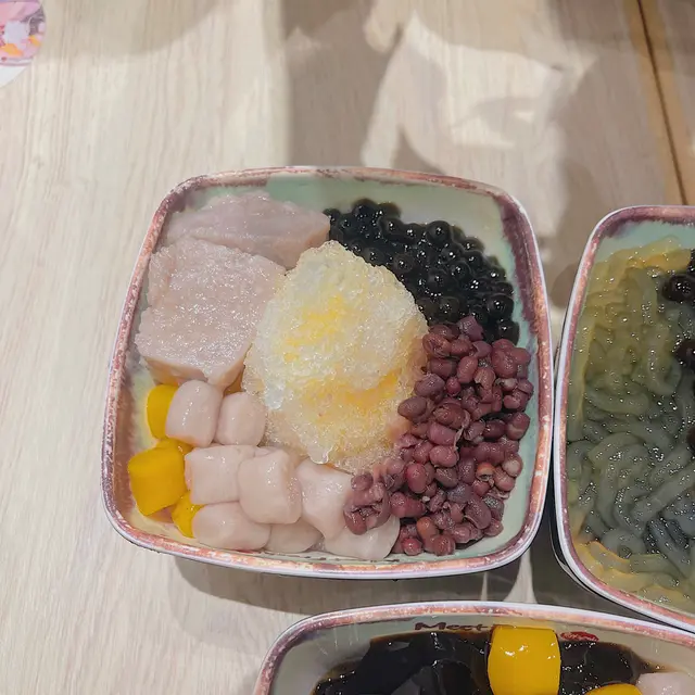 有芋圓,芋頭,紅豆,珍珠,黑糖冰沙,呢個比較偏甜糖水味,芋頭煮得幾好,淋之餘又有口感,好粉,