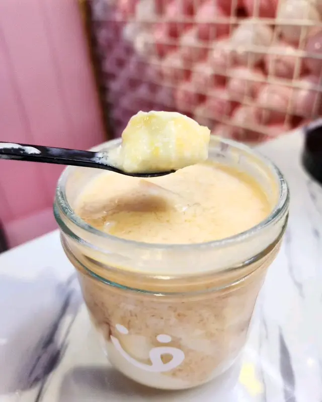 奶凍分咗兩層,面頭係佈滿咗椰香雪燕,淨係扭開個蓋都聞到好濃郁嘅椰香味🥥食之前要將個匙羹插到底, 之後就攪勻佢哋嚟食,跟住就會令到啲雪燕同埋果凍可以均勻黐埋一齊👍