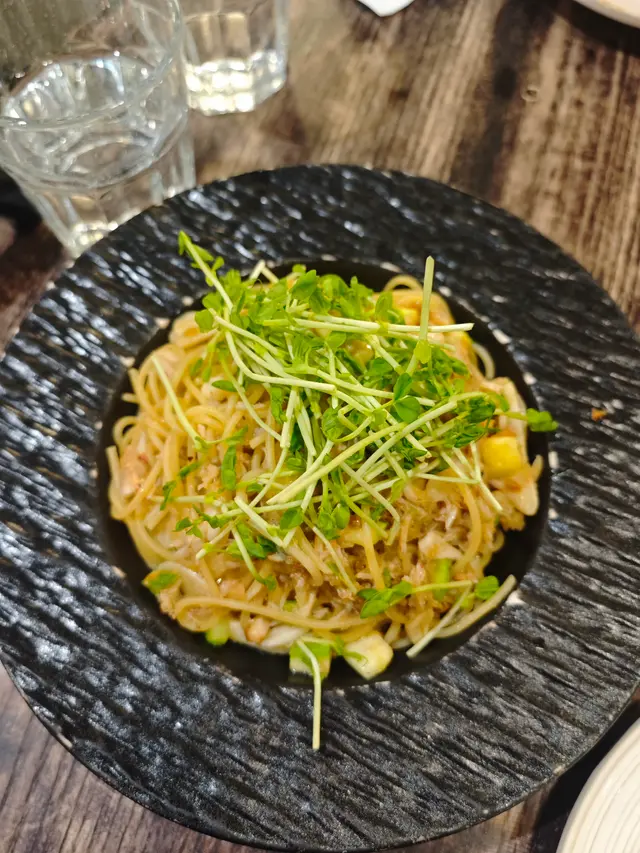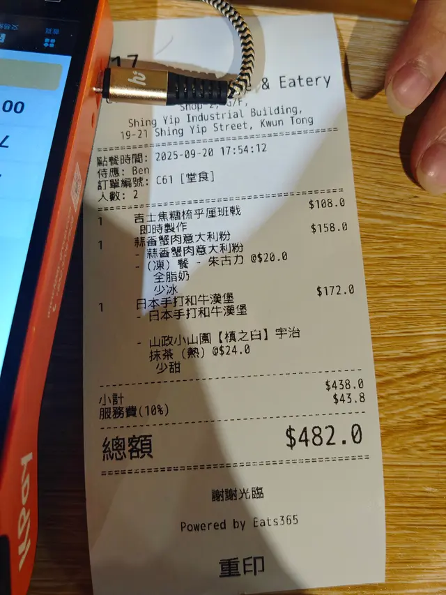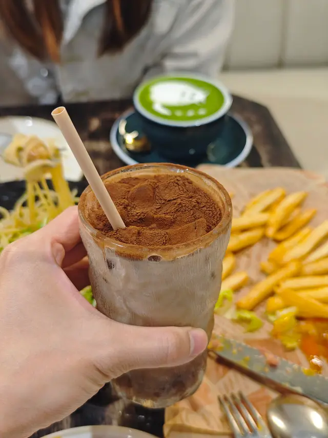 意粉份量都非常之多,煮得岩岩好意粉仲係彈。非常之多蟹肉同蒜片,蒜香味非常之足夠香。蟹肉亦都唔少,多到每啖意粉都會有好多蟹肉。另外跟餐叫左杯抹茶,估唔到會有可愛嘅拉花咁靚,抹茶個味勁香濃又唔澀,好好飲