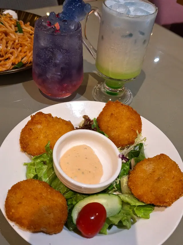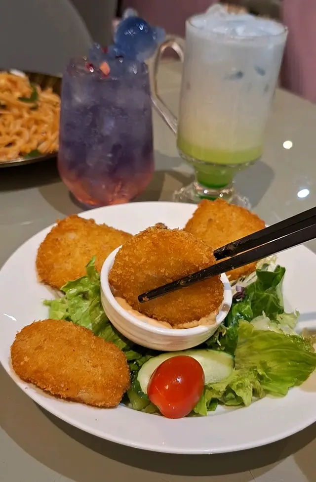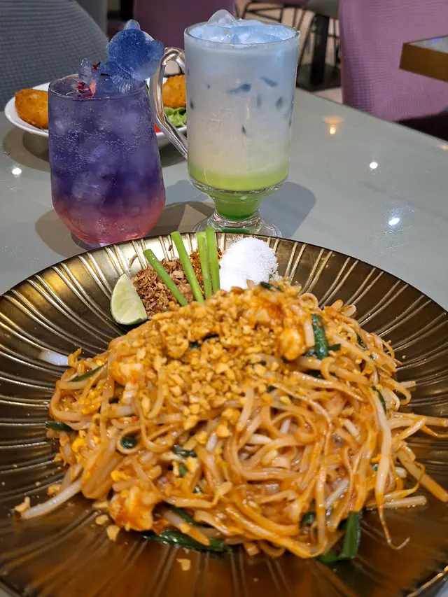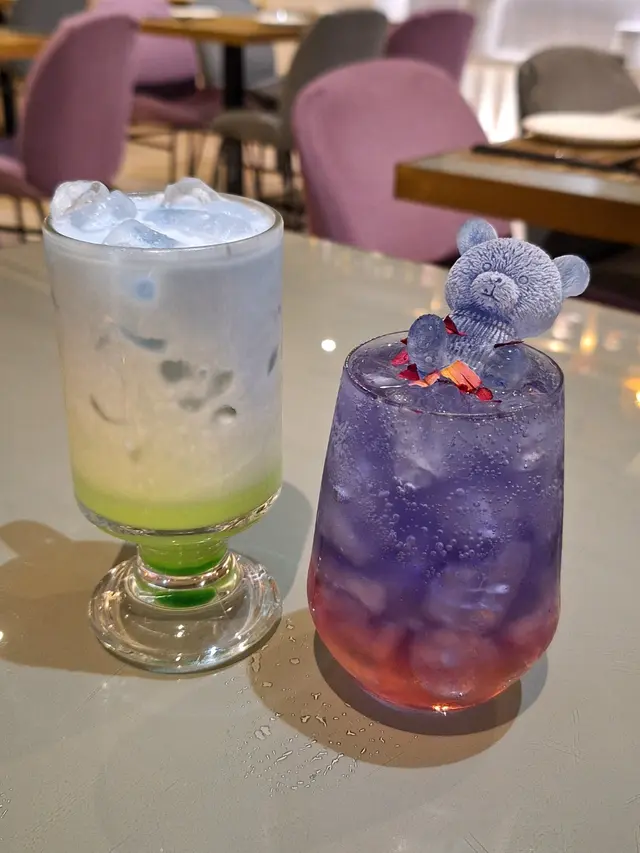 呢間餐廳嘅特飲都好靚好吸睛,泰火特飲外觀係紫藍紅漸變色,仲有小熊冰塊,好夢幻好少女心好打卡able, 味道係蝶豆花加入梳打水,仲有檸檬汁, 味道超級清新, 解暑消膩一流。