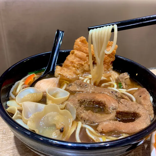 煳辣湯底 + 新加坡肉骨茶,有丁香、肉桂同原粒獨子蒜🧄等香料熬製,配黑胡椒豬扒,五小辣黎講又唔算好辣,易入口,啖啖都有肉骨茶香,唔想晒湯底,將油炸鬼索晒D湯,爽!另外一提個白木耳口感都幾得意😋同黑木耳口感唔同,未試過可以一試~