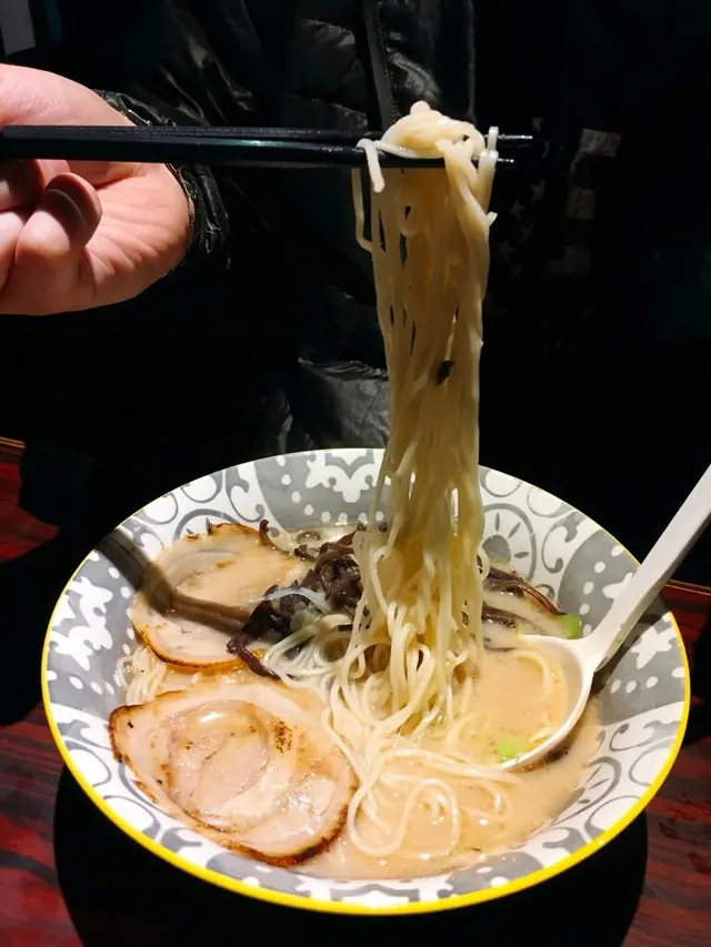 W:雖然麵條點左最硬,但食落口感完全唔覺得硬😐😐…可以算係淋嘅境界….叉燒係薄切,明顯有火炙過,油脂部分唔算多,可以避免油膩感…亦可見師傅真係”好好手藝同刀功”🙊🙊湯底豚骨味濃,但湯不算杰,整體尚可接受