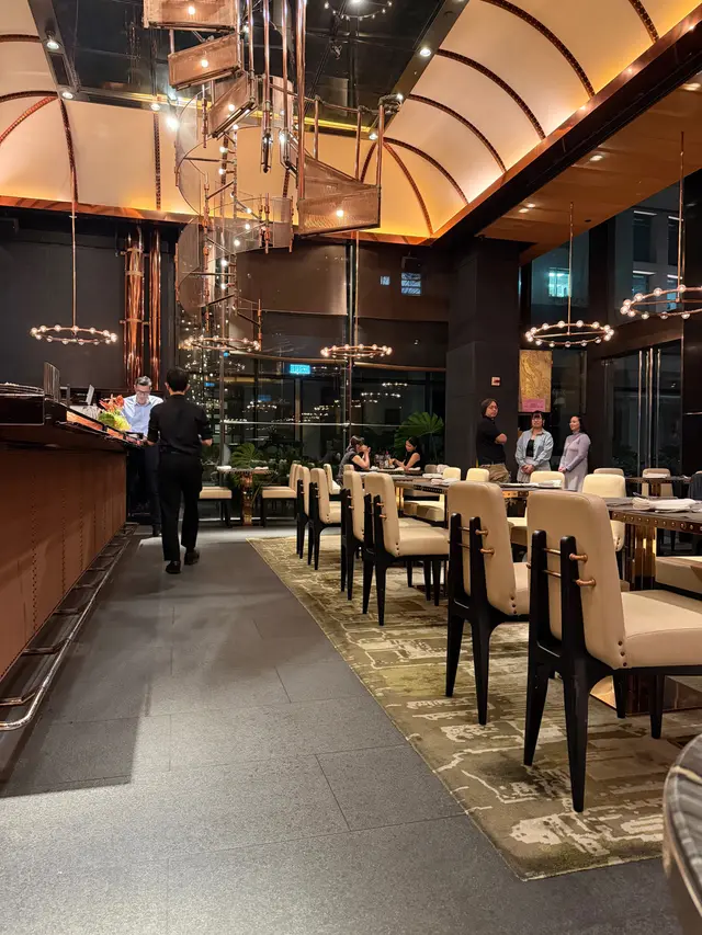 踏入餐廳,首先感受到的是那股自然與設計並存的氣息:高挑的天花、金屬與玻璃結構呼應著外頭的綠意,白天明亮、夜晚帶點神秘氣場。這裡不只是「隱世」那麼簡單,更像是一個讓人從繁忙中抽離片刻的秘密花園。