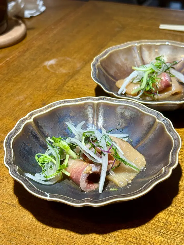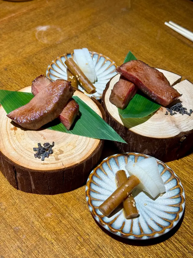 昆布漬牛舌,慢煮14個鐘,配上昆布即鹽一起食用。牛舌超級軟熟,質感難忘。配有昆布漬及漬蘿蔔,可清一清口腔,以便更好享用下一道菜。