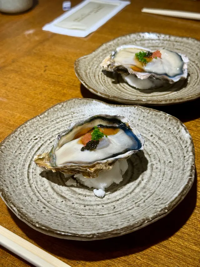 兵庫縣生蠔,生蠔新鮮肥美,鮮甜!加上三文魚子、青蔥、酸醬,作一點綴,也有調味作用。
