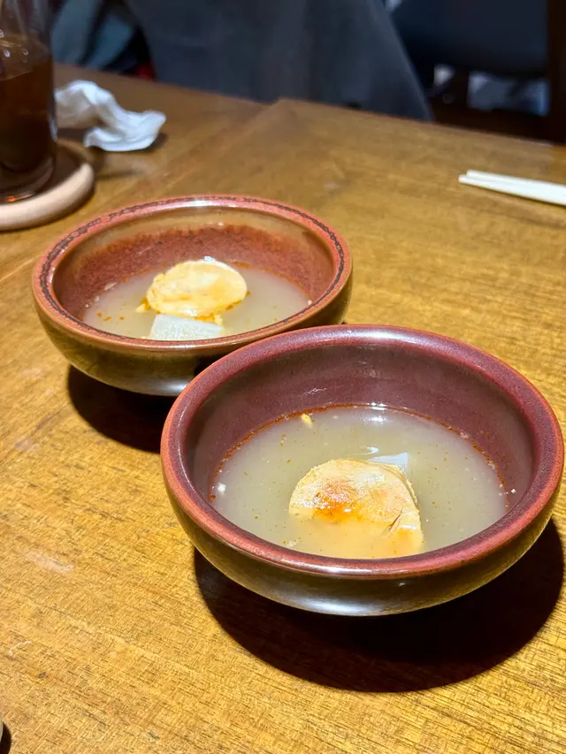 鮟鱇魚乾忌廉湯,師傅用咗釐清技術,令到個湯好清澈,恍如燉湯一般。