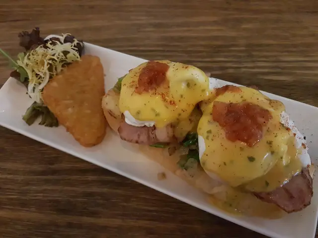 班尼迪蛋非常的香滑。配上老朋友荷蘭醬本是一件很容易令人食膩的事,但舖在蛋面上的酸咪咪蕃茄莎莎此時卻起了神奇的消膩功效;墊底的煙肉個人認為可以處理得具焦脆一些,而且肉本身亦覺有點偏瘦了;再下的muffin一向是點吃egg benedict最大的目的及原因,盡嗦肉汁及蛋汁的它,絕對是精華的所在....