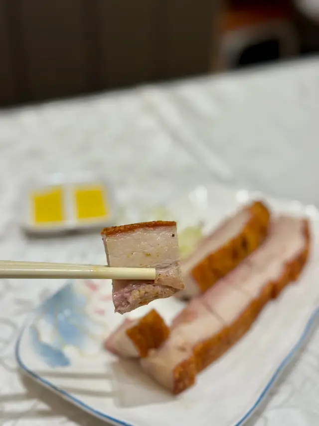 燒腩皮金黃色,肥瘦適中,外皮脆口,肉質夠腍,尾位有鹹香除韻。