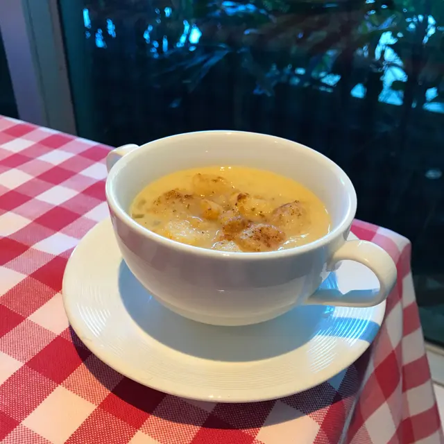 湯就有栗米周打魚湯配蒜香麵包粒,材料相當豐富,入口濃郁。