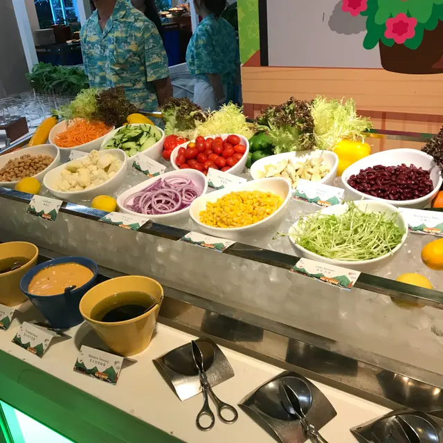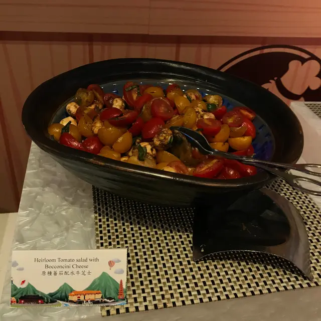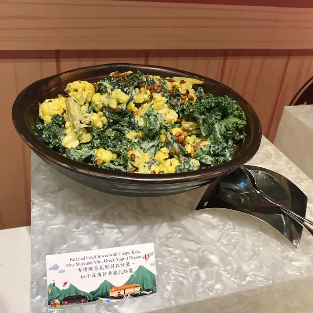 然後一個大轉身,轉去沙律區位置,食客可以自製DIY口味的沙律菜,亦有酒店預備好的mixed salad 有凱薩沙律、香烤椰菜花配羽衣甘藍、松子及薄荷希臘乳酪醬、義大利雜錦凍肉腸拼盤、原種蕃茄配水牛芝士,味道口感豐富,各有特色,充滿意大利風情口味。
