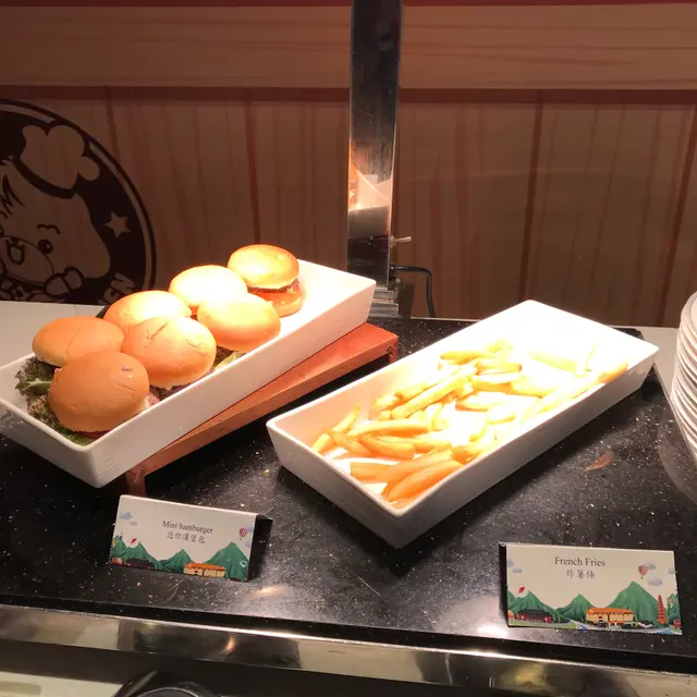 熱食有大人小朋友都愛的美式食物,迷你漢堡包和炸薯條。