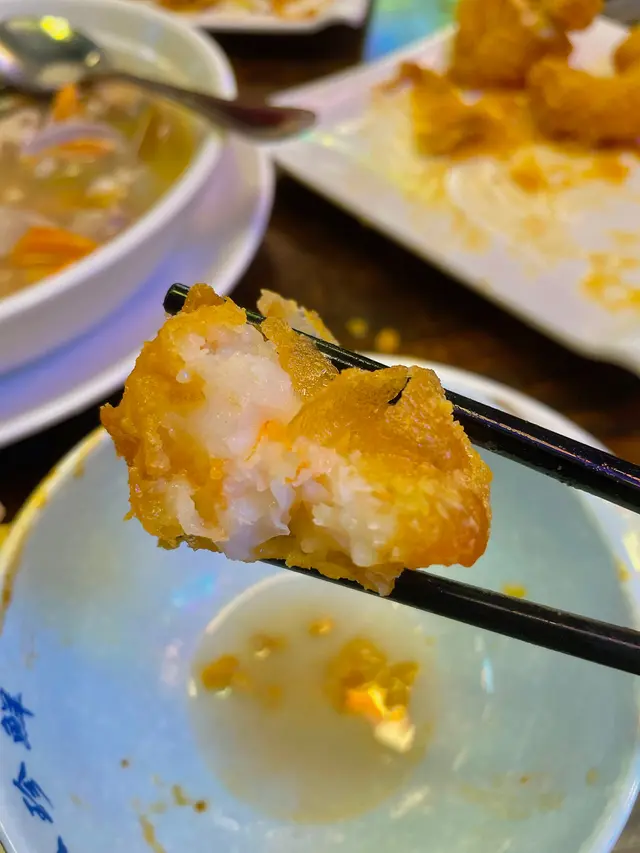 黃金蝦球(單點$128),即叫即炸,食落好熱辣辣,表面鋪滿鹹蛋黃,味道鹹香,炸漿口感薄脆,鮮蝦肉質彈牙,味道鮮甜,整體皮薄餡靚。