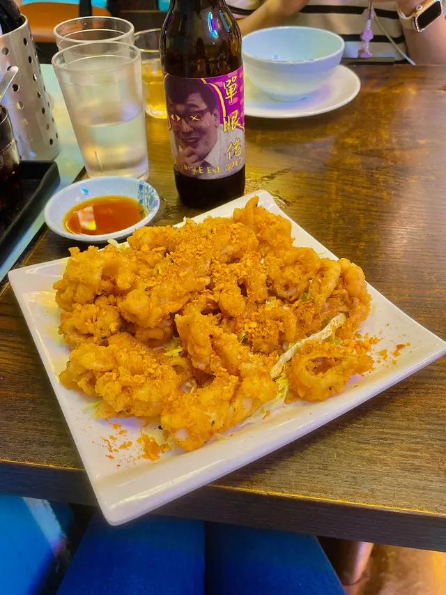 椒鹽鮮魷(單點$108),表面鋪滿椒鹽、蒜蓉,蒜蓉經過爆香之後,食落脆卜卜,如果有落埋指天椒,應該會更加好味,炸漿口感酥脆,鮮魷肉質爽脆、不韌,食落好香口,配以喼汁食用,味道更佳。