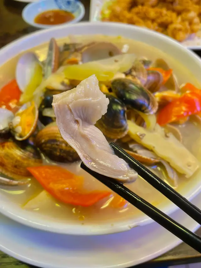 胡椒豬肚浸花甲(單點$118),豬肚份量多,口感厚彈,花甲肉質飽滿,食落鮮味十足,湯底飲落充滿白胡椒味道,但又不會太濃烈、帶點豬骨味道,配料包括有鹹酸菜、辣椒、蒜頭。