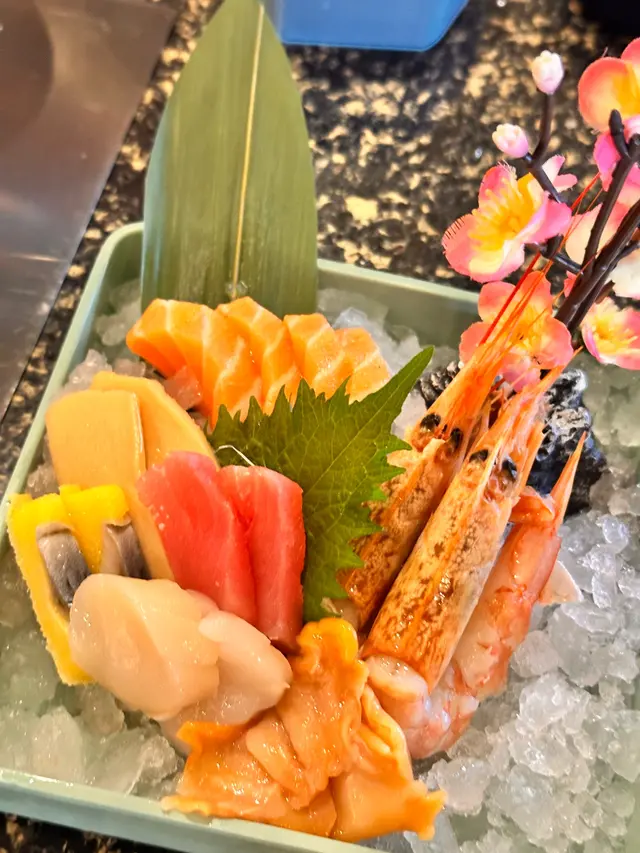三文魚鮮甜嫩滑,入口即化;吞拿魚濃郁鮮美,肉質緊實;帶子甘甜軟嫩,清新爽口;甜蝦鮮甜彈牙,帶海水鹹香;帆立貝鮮嫩多汁,味道清甜,搭配紫蘇葉更添清香。整體鮮味突出,冰鎮更佳。