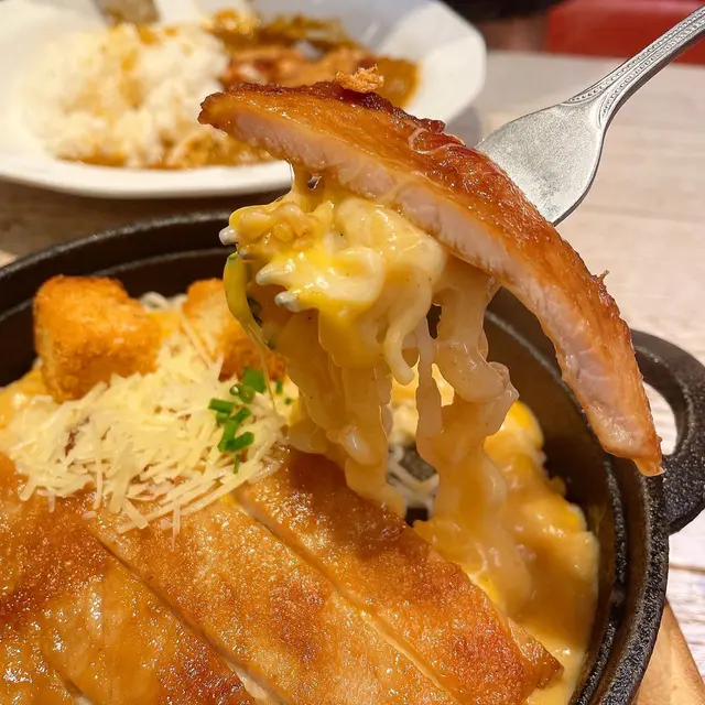 佢用一個熱嘅鐵碗裝住,所以啲芝士呀面呀同啲豬扒都keep住熱嘅,所以個芝士出到嚟呢嗰個質感都係用擁地,唔會話好似膠嘅咁,每一啖食落去都係啲芝士撈埋啲面一齊,跟住豬扒都係好軟熟啦林嘅,唔會話硬,識落啖啖肉好有口感,最特別係佢有個麵包粒配咗係個面上邊,平時外賣呢,呢個麵包粒都會凍咗淋左,但佢今次係脆,熱辣辣配埋啲芝士,真係好正囉!