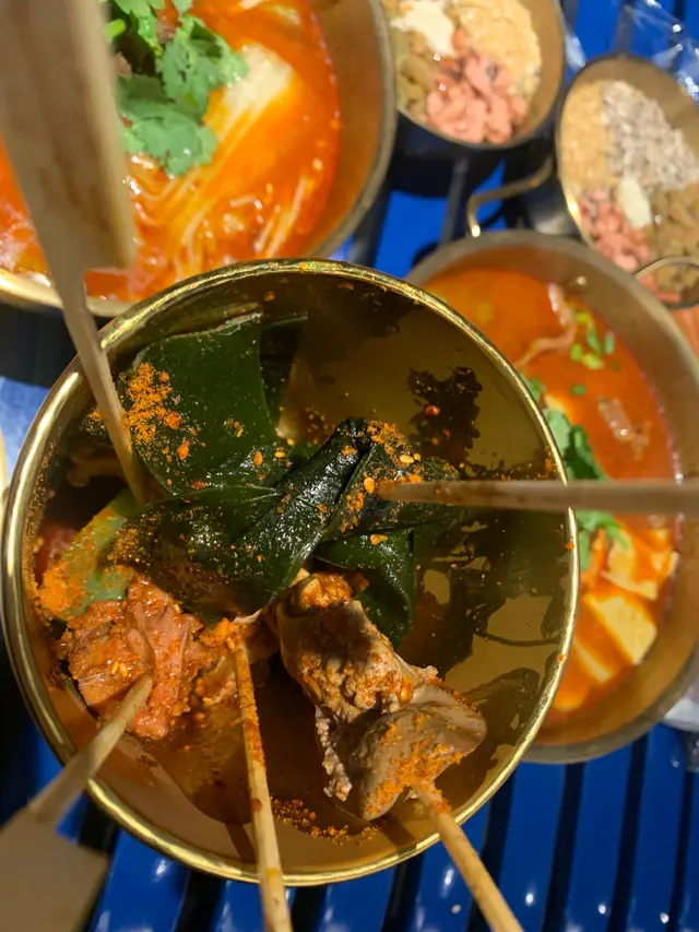 點了麻辣燙自選,兩分各選了肥牛,鵝腸,牛百葉,金針菇,年糕,蓮藕等等,麻辣燙可以選擇不同辣度,最厲害的是這個湯底,crazy 好吃好喝,這個湯底老闆說熬了好幾個小時,新鮮的湯啊很值得喝啊。