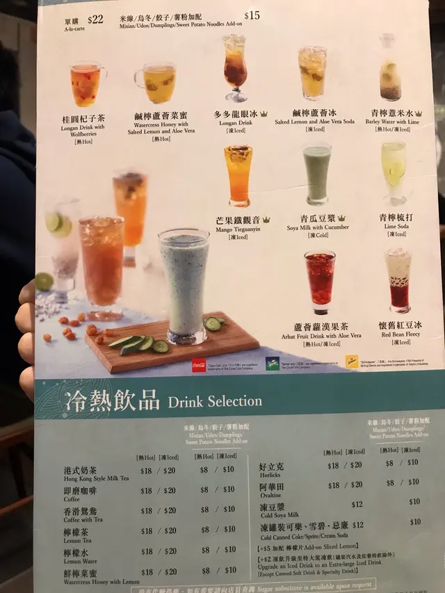 飲品有芒果鐵觀音同青瓜豆漿