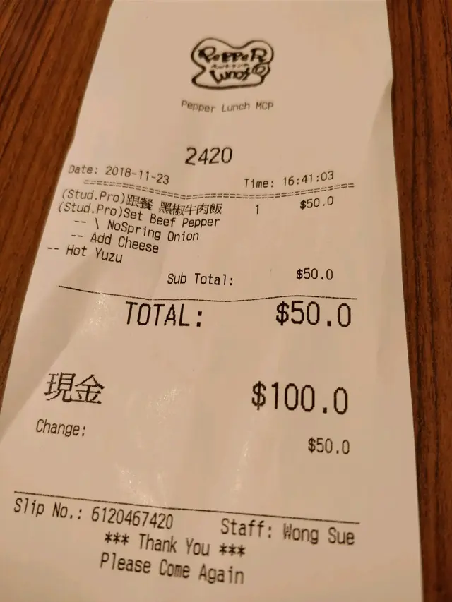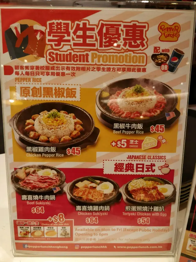 時間顛倒的我,今日4時半才吃午餐。這個時間店內只有幾位食客,就連收銀部都沒有人! 我只好走到出餐部,找店員幫忙下單。午巿優惠和學生優惠時間是到下午6時的! 有帶學生證的我當然選擇學生優惠,點了一份黑椒牛肉飯,走蔥,加芝士。天氣開始變涼,要保重身子,所以餐飲點了熱柚子蜜。飲品在收銀部自取,而食物則由店員遞上。