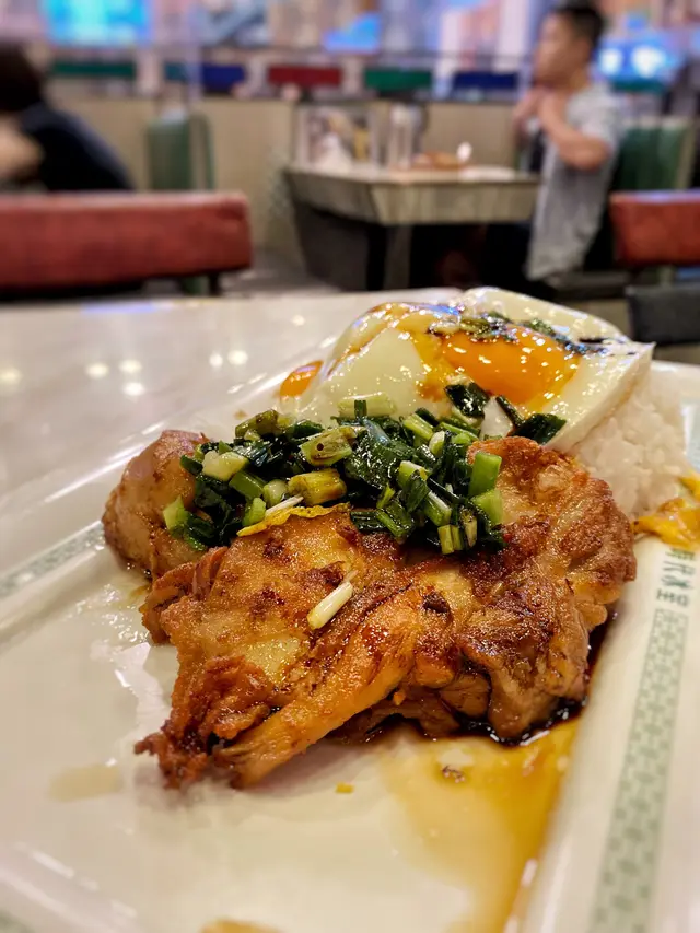 蔥油雞扒三眼煎蛋飯+凍奶茶|$62