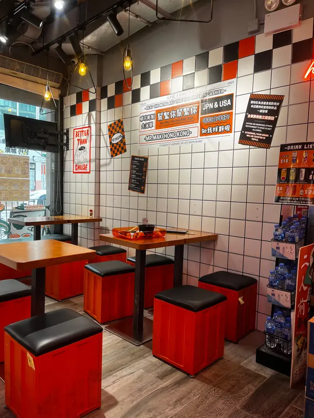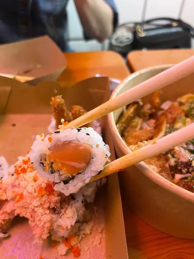 紫菜卷物裏裡頭,每件三文魚都滑嫩嫩大粒,一件放入口暖飯卷,微辣滋味
