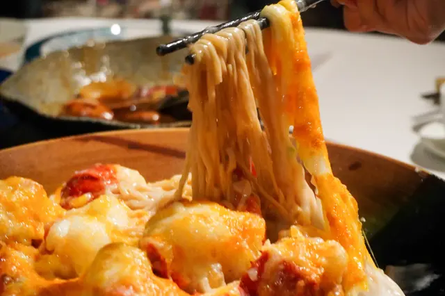 焗過的表面很焦香,芝士非常濃稠且可以做到拉絲效果喔
