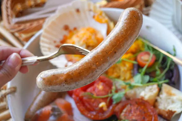 香腸也有兩條,但就稍為油了些。煙三文魚比較吸引又份量都不算少。
