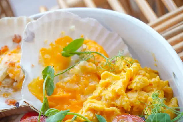 這個 All Day Breakfast 是有連殼的扇貝,而且還是2隻喔!