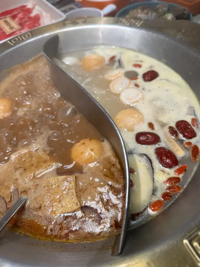去咗旺角牛站(駅)打邊爐,佢係任食放題形式,選擇真係多到眼花🤩。我哋揀咗沙爹同椰子雞鴛鴦鍋,沙爹湯底香濃帶辣,滾耐咗更惹味;椰子雞就清甜清香,飲落仲有椰子味,食完完全唔膩🥥🐔。兩個湯底一濃一清,配搭得好正,邊打邊換口味超過癮。