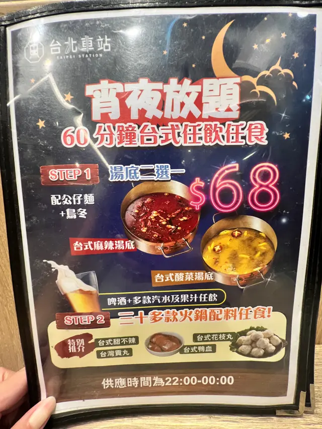 我哋食完晚餐臨走嘅時候仲發現原來宵夜時段更加抵😱$68放題任飲任食,湯底可以二選一