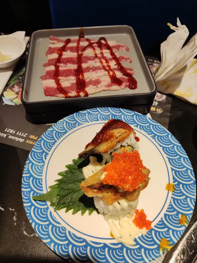 海鮮叫咗海蝦/帆立貝/多春魚,燒肉點咗和牛/牛舌片/五花肉同埋美國牛肉都唔錯,可以夾埋蒜片同生菜同燒烤醬汁一齊食好好味!壽司點咗鰻魚卷同埋軟殼蟹卷,還有炸物點咗大蝦天婦羅/芝麻雞翼/炸蝦餅/炸榴槤球同埋芝士蝦春捲都幾好