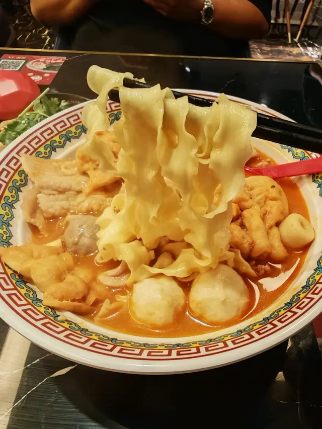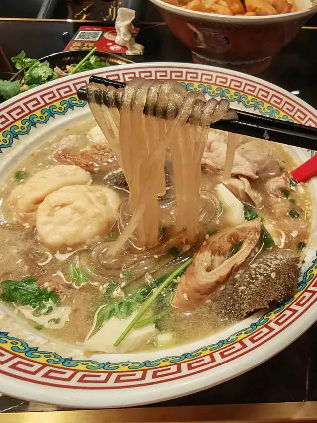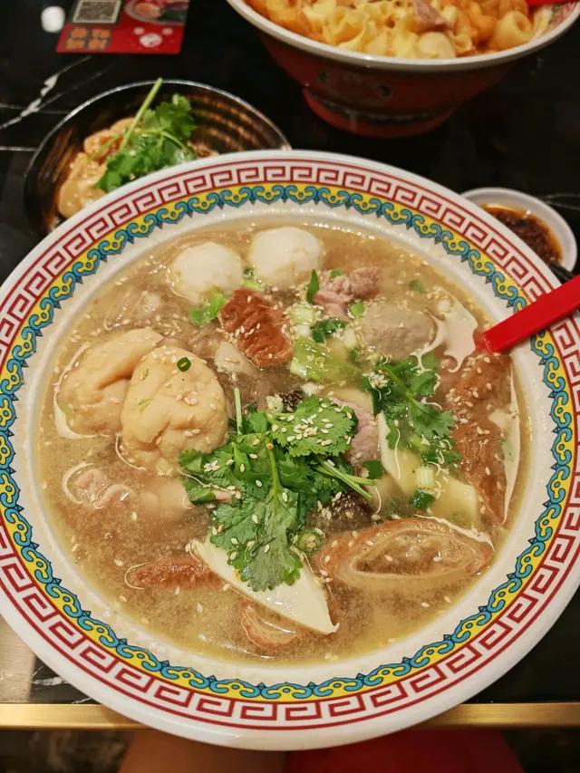 魚腐同豆腐串同樣非常吸湯, 吸收曬胡椒湯底的味道, 咬落去爆湯, 非常好食。滑雞片同滑牛肉, 入口非常嫩滑。五花腩片, 肥瘦均勻, 入口肉質彈牙。番薯粉晶瑩Q彈, 入口感覺煙煙韌韌, 做麵底好食!!~