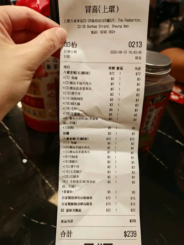配料: 魚腐、牛丸、墨魚丸、滑牛肉、胡椒豬肚、豬大腸、牛黃喉、毛肚