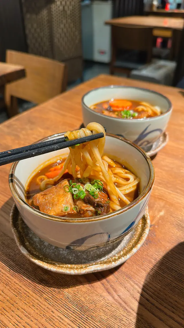 🐽黑咖喱湯豬軟骨稻庭烏冬分別有2碗,黑咖喱味相當濃郁,每條麵條都掛滿醬汁!豬軟骨醃得相當入味,肉塊鬆軟,每樣食材都唔馬虎~