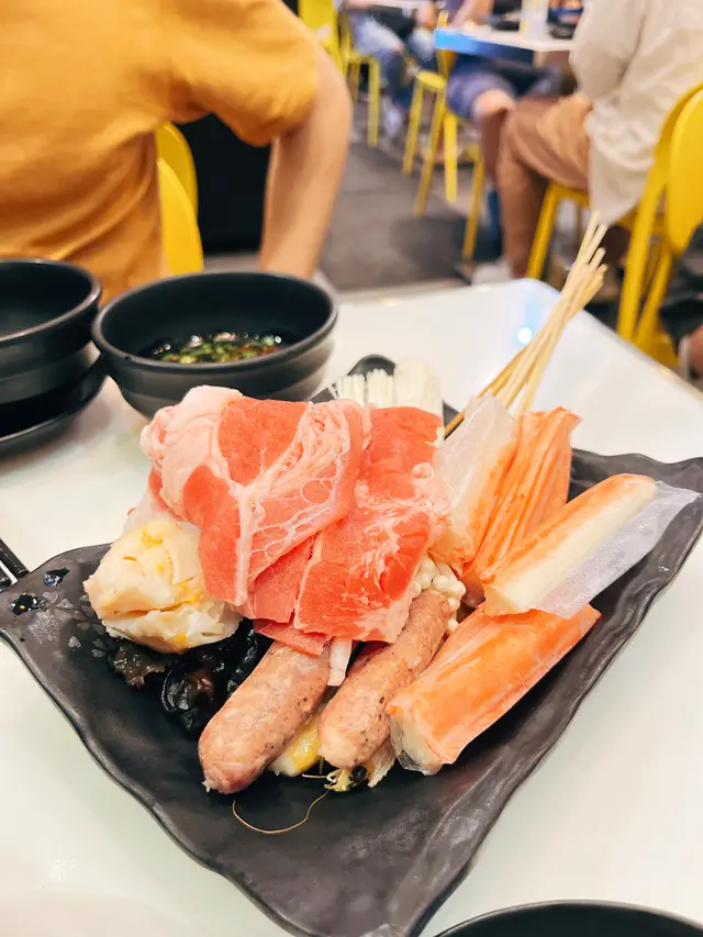 醬料嘅選擇都好多,特別推介可以落少少花椒油,味道麻香,超級惹味👅。二自助區可以攞嘅嘢食,種類都算全方位,有海鮮、牛肉、豬肉、蔬菜、粉麵等等😎,而且有啲配料已經用竹籤串好咗,啱晒一串一串咁樣淥嚟食。飲品雪櫃除咗有自家飲品,仲有啤酒任飲🍻!