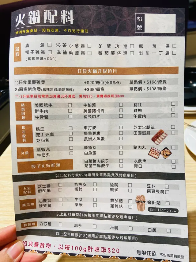 超抵👍🏽任飲🥤任食🥘火鍋🐥雞煲 ngyuenwa922等级42023-09-26547 views Follow 假日優哉悠哉,去深水埗逛街,行行吓發覺呢間小店有得打邊爐,$158/位,任飲任食,好似幾抵食啵。店內好多卡位,座位夠寬敞,店員仲介紹我哋仲有小菜選擇,不過最尾都係揀返抵食邊爐。仲有得加$20有任食,同埋加$68烤魚原條,不過擔心眼闊肚窄,今次還是淨係打邊爐先。鴛鴦湯底(麻辣湯底+椰子雞)冰火交戰的感覺👍🏽辣到㷫烚烚🔥+甜甜的椰子🥥2超多款食材選擇,新鮮食材、蔬菜🥬,白菜豬肉餃好味👍🏽調味料區整齊整潔,有十款選擇😮任飲區1The above review is the personal opinion of a user which does not represent OpenRice's point of view.1Share超抵👍🏽任飲🥤任食🥘火鍋🐥雞煲 嚐味 https://s.openrice.com/QrLT0SzEc00Report Post Ratings5Taste5Decor5Service5Hygiene5ValueDining Method堂食