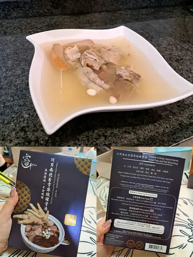 最近想飲湯滋潤下 呢款湯可以止咳潤 滋陰養顏 平時自己煲起碼都要需時一個鐘以上 而家呢個湯包快手 又岩岩好1人份量👍而且入面豬骨仲好軟熟 又夠足料 糖水夠曬清甜😍