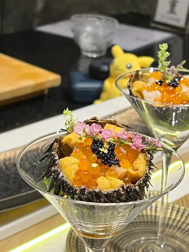 ✨原隻紫海膽配牡丹蝦三文魚籽