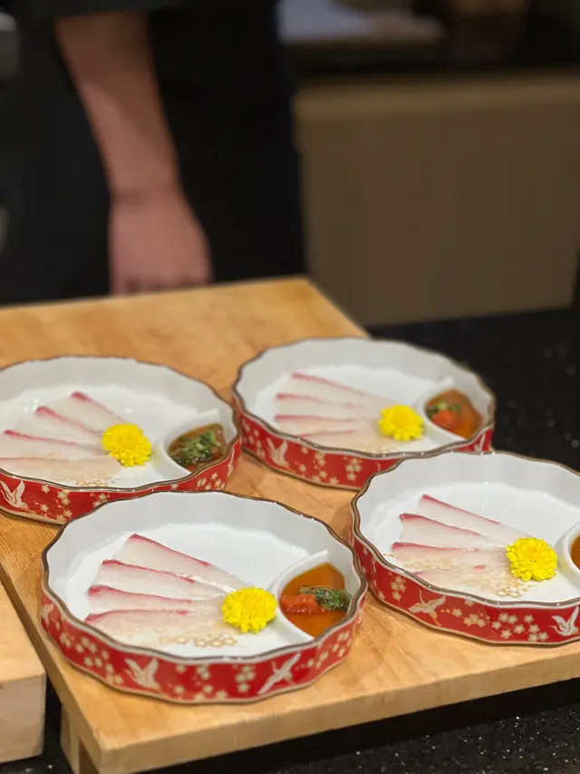 師傅片到啲魚生超薄,真係做到薄如紙,魚肉口感煙韌,配上辣椒紫蘇酸汁,醬汁做到好特別,突出間八原先既鮮味