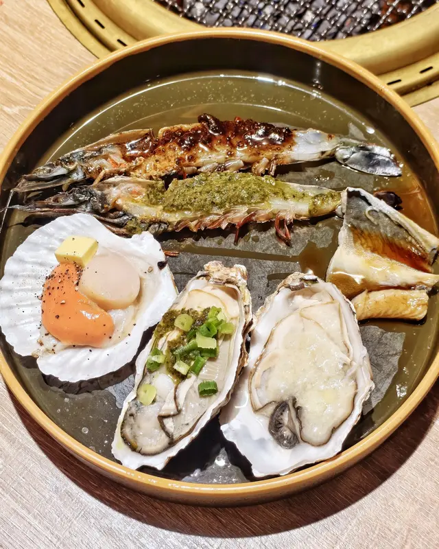 呢度嘅海鮮🌊都幾高質,炙烤霸王蝦🦐有鹽蔥同埋黑蒜油兩種口味可以揀🔥,肉質彈牙鮮甜,香氣撲鼻😋。