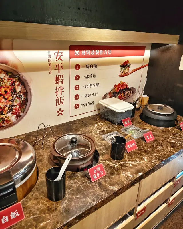 自助區仲有多款飲品🧃、蔬菜菇類瓜類🥬,仲有人氣安平蝦拌飯🍚同十二醬料自由配搭,🥰真係應有盡有。