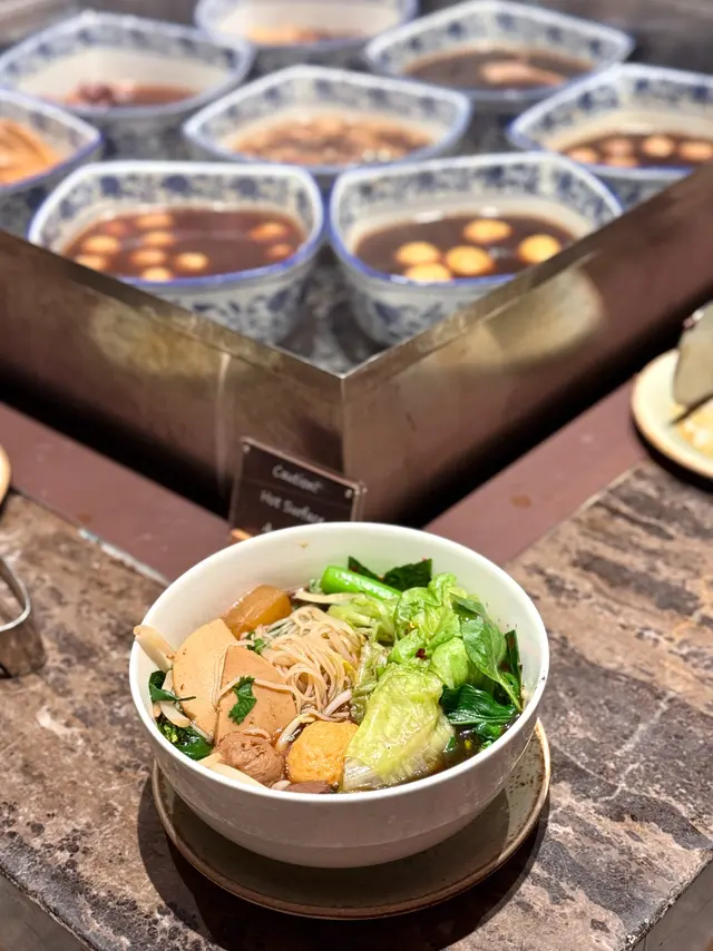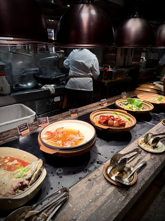 例如蒸魚、大蒜香草烤羊架、海南雞飯、燒大蝦、咖喱、車仔麵、和牛可樂、巴東牛肉、烤牛肉等等,連花雕酒蒸遠海梭子蟹、燒豬腩仔、東坡肉都有!