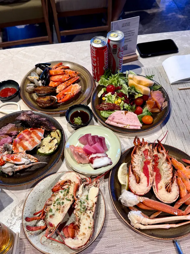 各款凍海鮮都有,包括爆膏龍蝦、長腳蟹、青口、大蝦、鮑魚等,仲有日式刺身,如三文魚、油甘魚、吞拿魚、八爪魚等,完全滿足你的海鮮魂💯