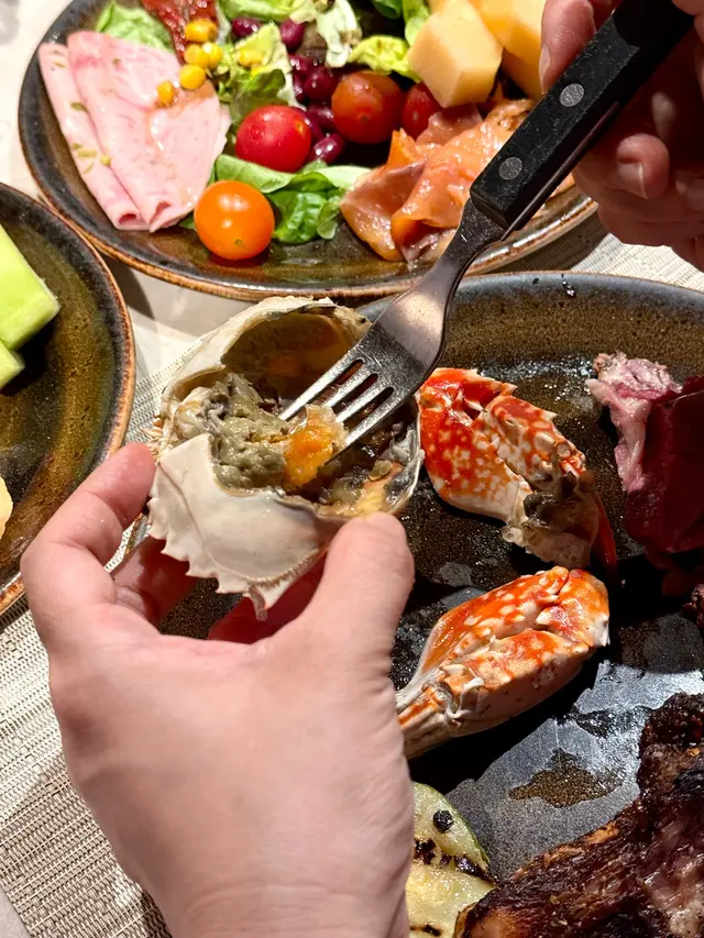 前菜及沙律:除冷盤海鮮,仲有沙律吧、水牛芝士蕃茄沙律、煙三文魚、cold cuts、油漬蕃茄乾、麻辣牛展、巴馬火腿及各款芝士等,各式其適。
