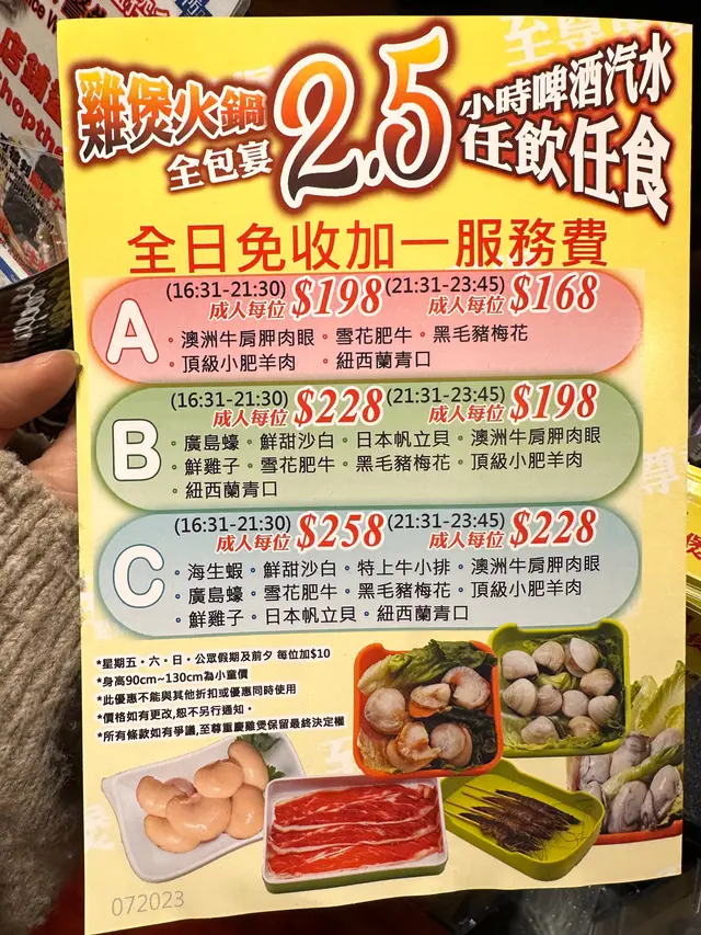 有三个不同档套餐,食材丰富度不同,不过除了套餐限定的几款(如虾 贝类等)用纸另外落单之外,还有其他很多丸子 素菜 主食,扫🐎code自己落单,粤语不好的留学港漂宝宝也没有压力~